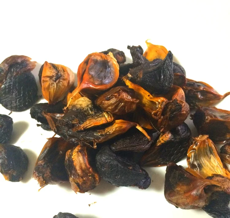 Hur det hela går till på det kemiska planet har jag ingen aning om, men resultatet är häpnadsväckande. Vitlöken blir mörkbrun, på gränsen till svart, den blir mjuk och den blir söt! Inte mycket till vitlökssmak kvar; påminner istället smakmässigt om torkade plommon. Gott till köttbullarna istället för lingon, som ett alternativ till marmelad på ett rostat bröd eller som världens förmodligen nyttigaste godis på egen hand.