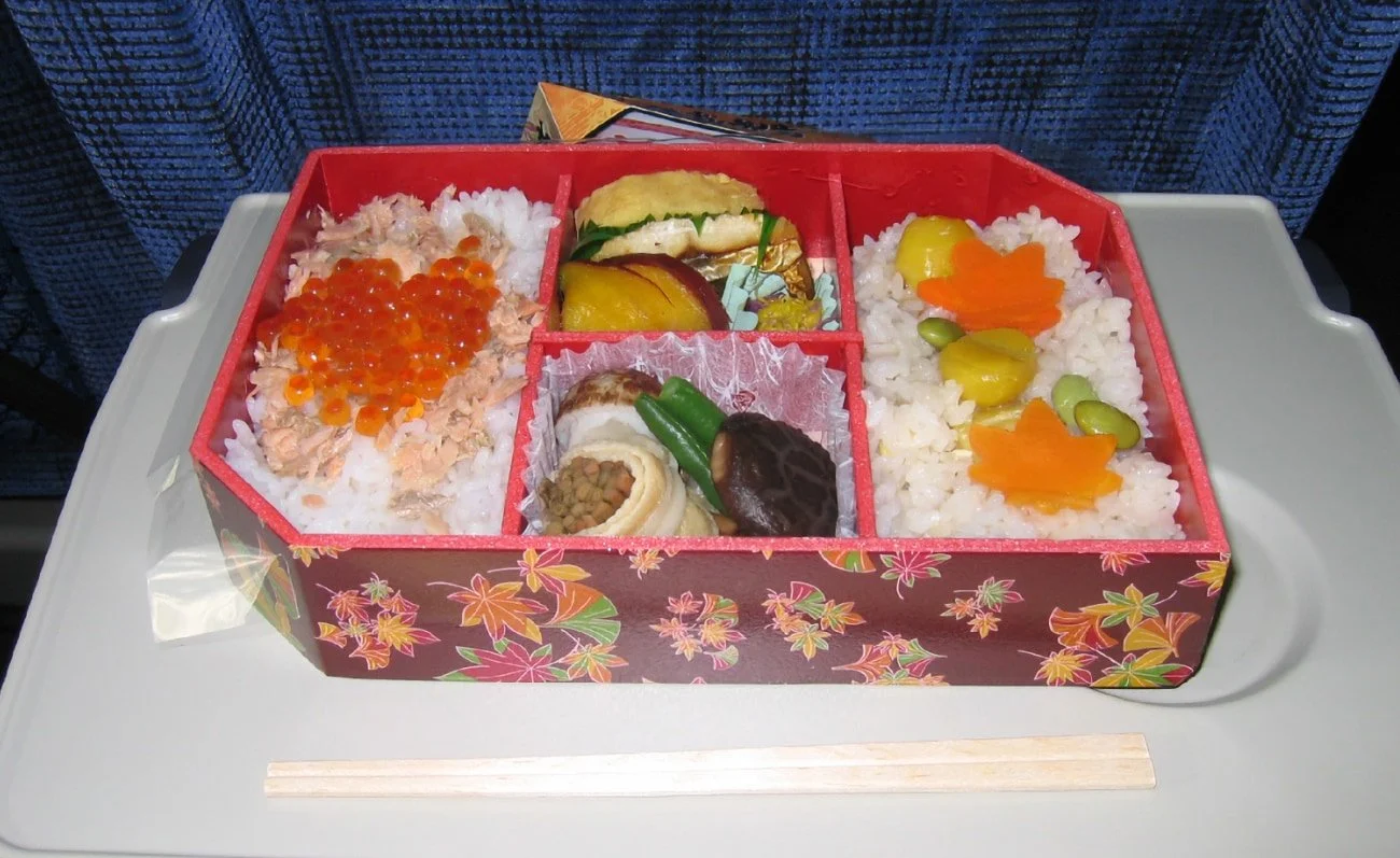När järnvägen kom till Japan på 1870-talet, så upptäcktes behovet av att kunna köpa en bento att ha med sig för att äta på tåget, och det fenomenet är i högsta grad levande än idag. Benämningen är ekiben, där eki betyder tågstation och ben är en förkortning för bento. Alla tågstationer utom kanske de allra minsta har en kiosk som säljer en eller ofta flera sorters bento (rekordet här är Tokyo Station som säljer säkert 100 olika varianter). Om man åker ut i landet, så märker man snart att innehållet varierar högst betydligt beroende av var man befinner sig. Varje trakt har sin egen version med råvaror som är specifika för just den delen av Japan. Många japaner ser fram emot att testa bento på de orter man besöker för första gången.
