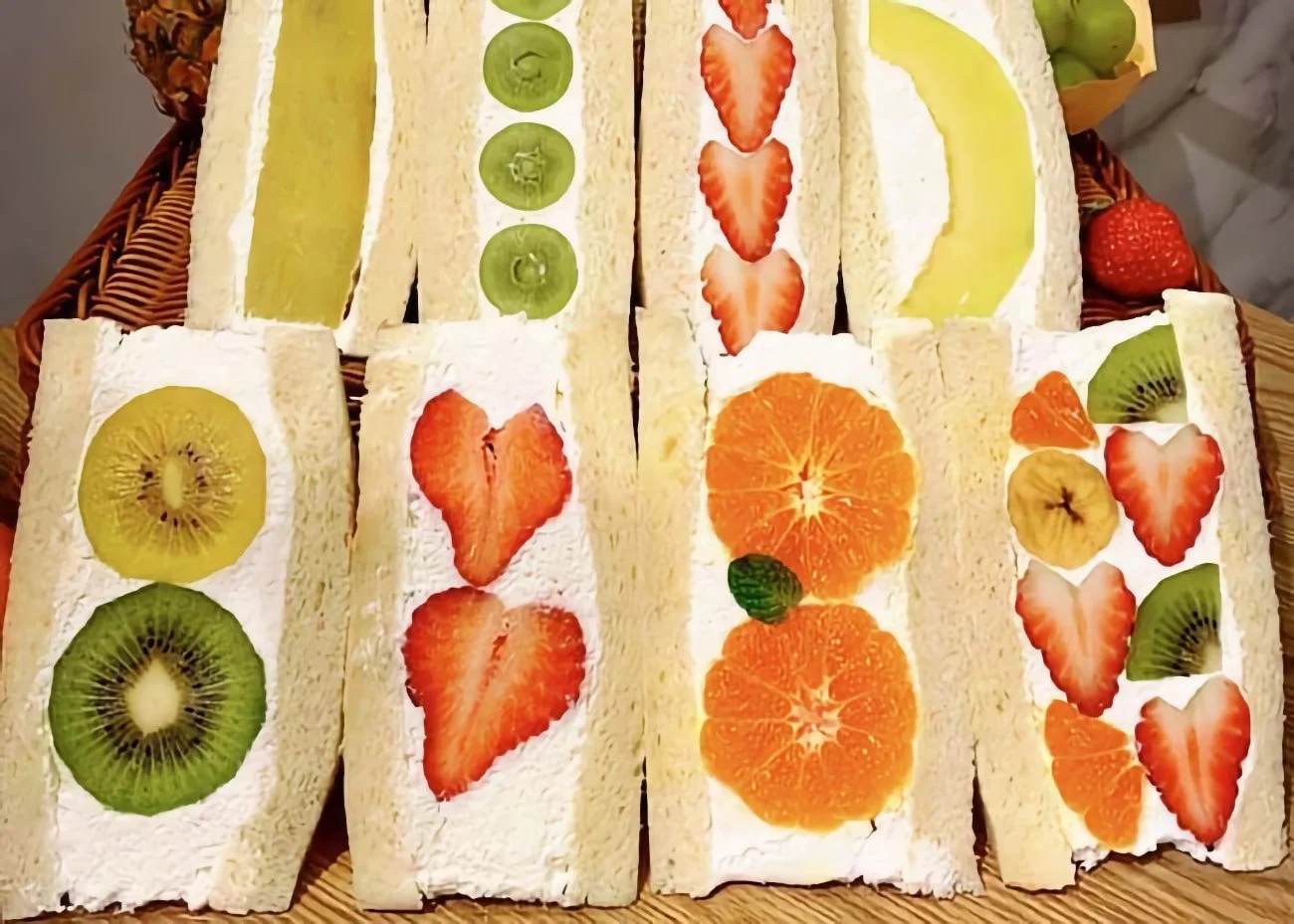 Fruktmackor från Sembikiya, Japans äldsta fik med frukt som specialitet. Möjligen fruktmackans uppfinnare.
