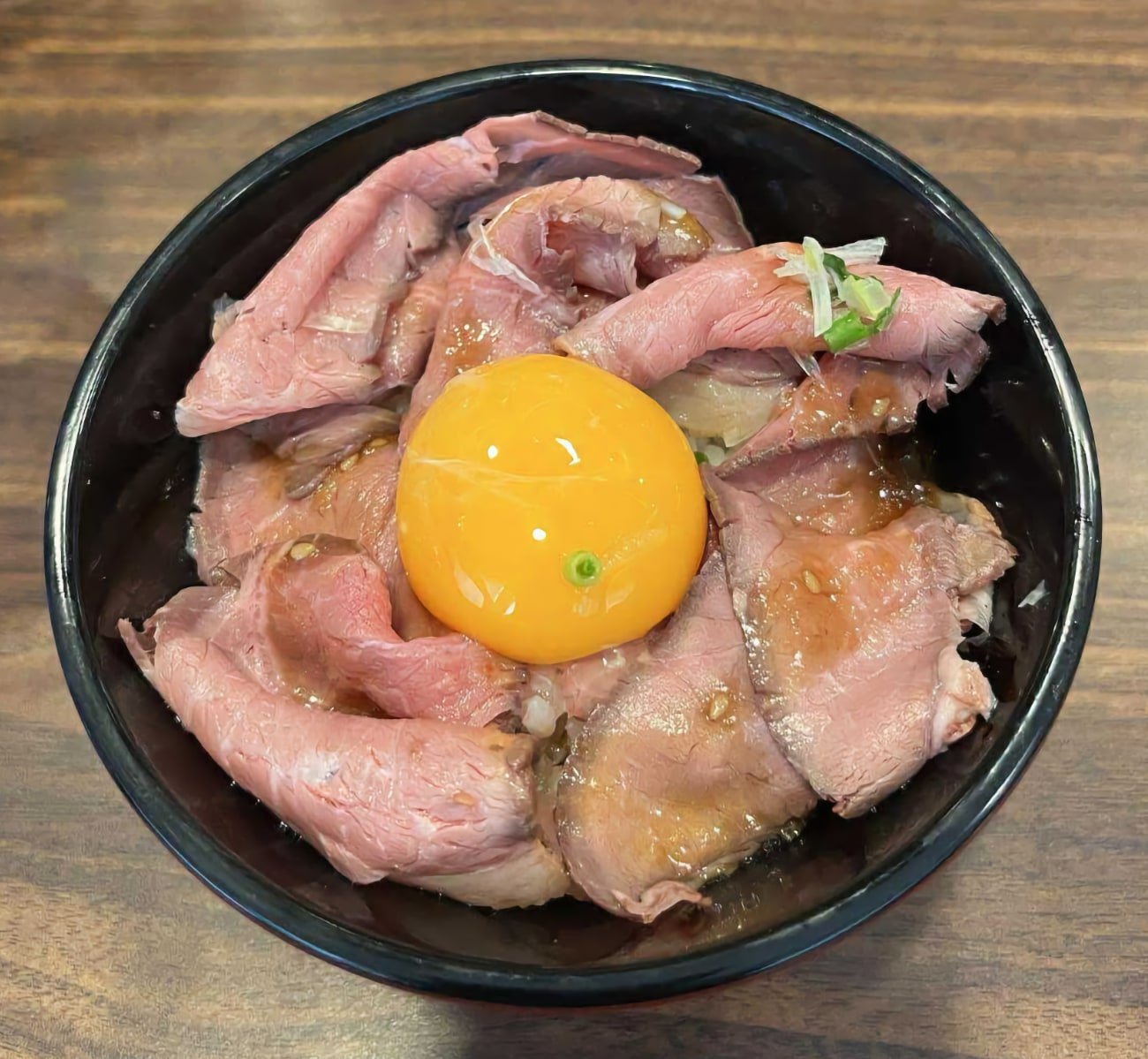 Här har vi en jätteliten grej (typ 30 kr) som vi hade när kompisarna Malin och Peter var här med ungarna. Rikligt med rostbiff och en god sås och en rå äggula på en risbädd. Hur gott som helst!